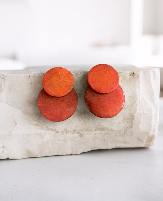 Pendientes artesanales realizados con dos piezas de madera pintadas a mano en un degradado vibrante que va del fucsia al naranja, evocando los colores intensos de un atardecer cálido. Cada pieza está sellada con una fina capa de resina que intensifica los tonos, aporta brillo sutil y protege la madera. Ligeros, expresivos y únicos, estos pendientes combinan la fuerza del color con la naturalidad del material, convirtiéndose en un complemento lleno de personalidad.