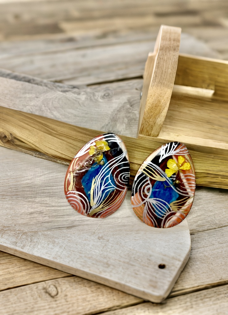 Pendientes XL Pintados a Mano sobre Madera y Resina con Flor Natural