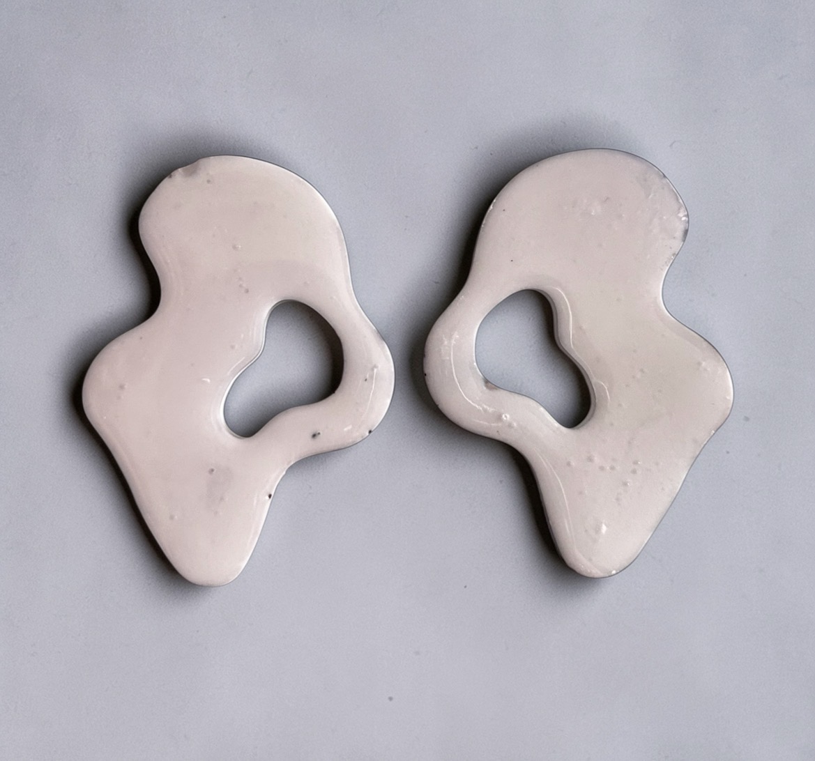 Pendientes grandes de resina con silueta curva y elegante, en un degradado muy sutil . Su diseño moderno y fluido, cubierto en resina brillante, aporta movimiento y sofisticación, convirtiéndolos en un accesorio llamativo y artístico que combina suavidad y color en perfecta armonía.