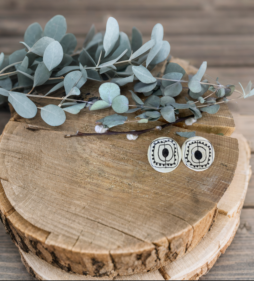 Pendientes grandes y redondos elaborados en cerámica blanca, pintados a mano con delicados detalles en blanco y negro. Cada pieza está recubierta con resina transparente que realza los colores, aporta brillo y protege el diseño. Su tamaño llamativo y su acabado artesanal los convierten en un accesorio elegante y versátil, ideal para quienes buscan un toque de estilo distintivo y sofisticado.