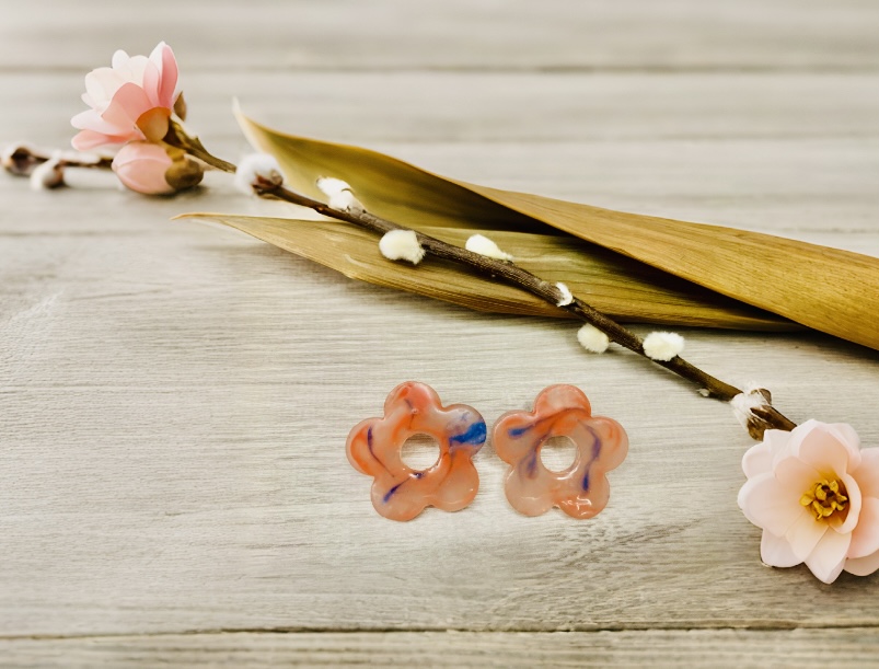 Estos pendientes están hechos en resina, con un diseño de flores detalladas que destaca por su textura de esmalte, aportando un acabado único y elegante. Cada pieza refleja trabajo artesanal y creatividad, ofreciendo un accesorio original y lleno de vida.