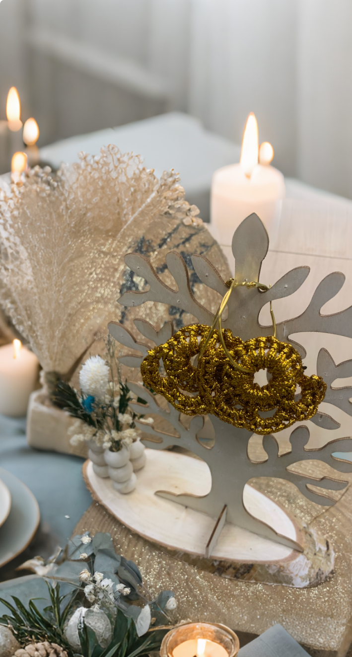 Pendiente de aro con delicada pieza tejida en acabado dorado. Ligero y elegante, combina textura y brillo para un look sofisticado y contemporáneo